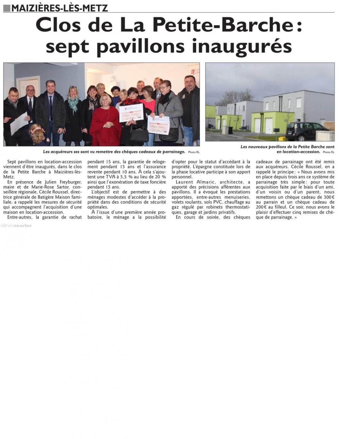 Vendredi 8 décembre , BATIGERE MAISON FAMILIALE a organisé sa deuxième remise de chèques de parrainage à Maizières les Metz, en présence de Julien FREYBURGER , maire de Maizières et de Robert BAEHREL président de BMF. A Cette occasion cinq familles d’accédants de Maizières les Metz et d’ Ennery ont reçu un chèque cadeau de 300 euros pour les parrains et 200 euros pour les filleuls. Beau moment de partage et de convivialité !